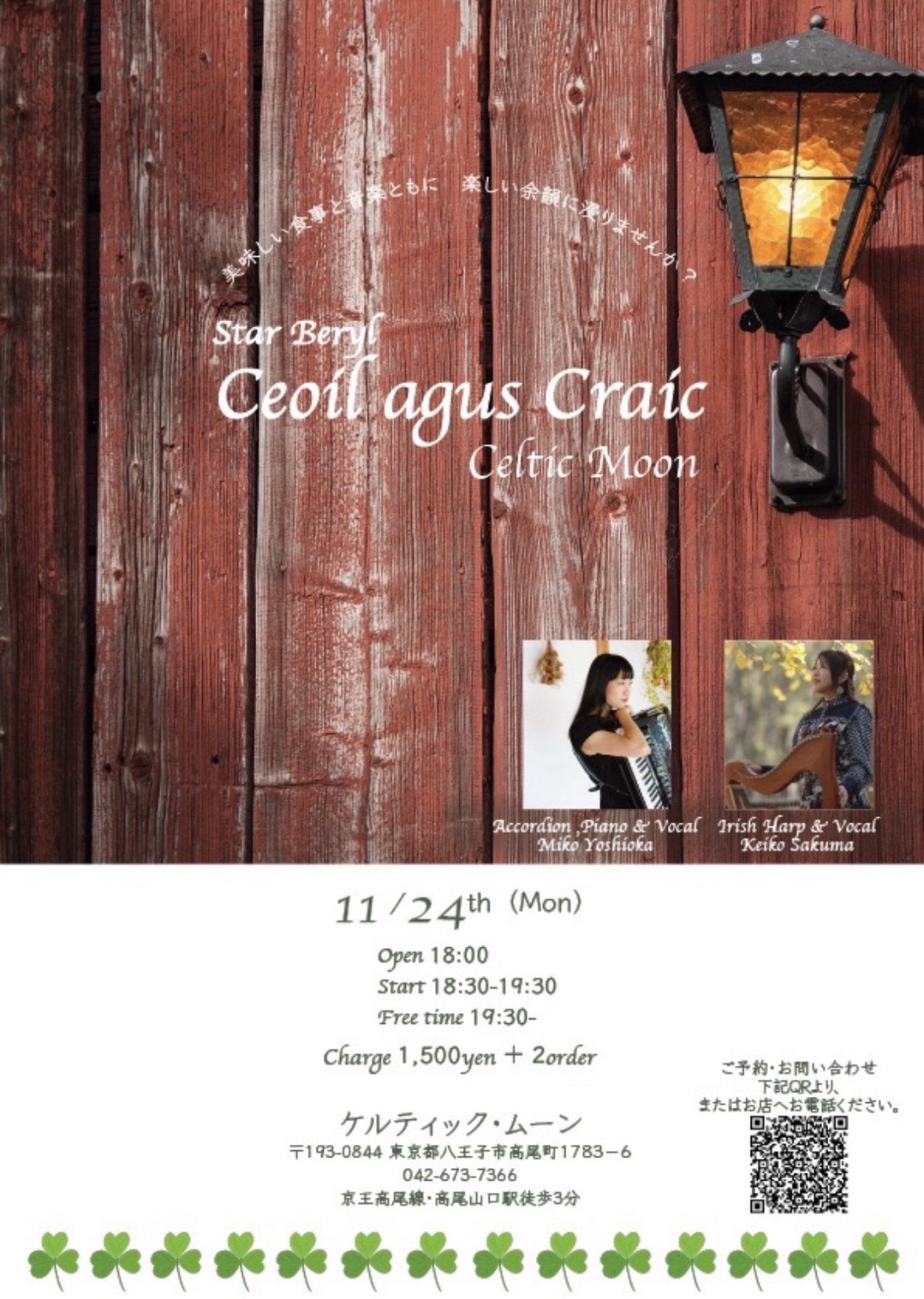 ケルティック・ムーンは八王子市の「高尾山」の麓、高尾山口駅から徒歩3分の場所にあるカフェとアイリッシュパブ、2つの要素を融合させたスタイルのお店です。