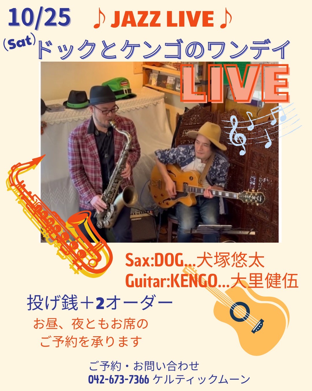 10/25(土) 【🎷DOG & KENGO🎸のワンデイJAZZ LIVE♬】