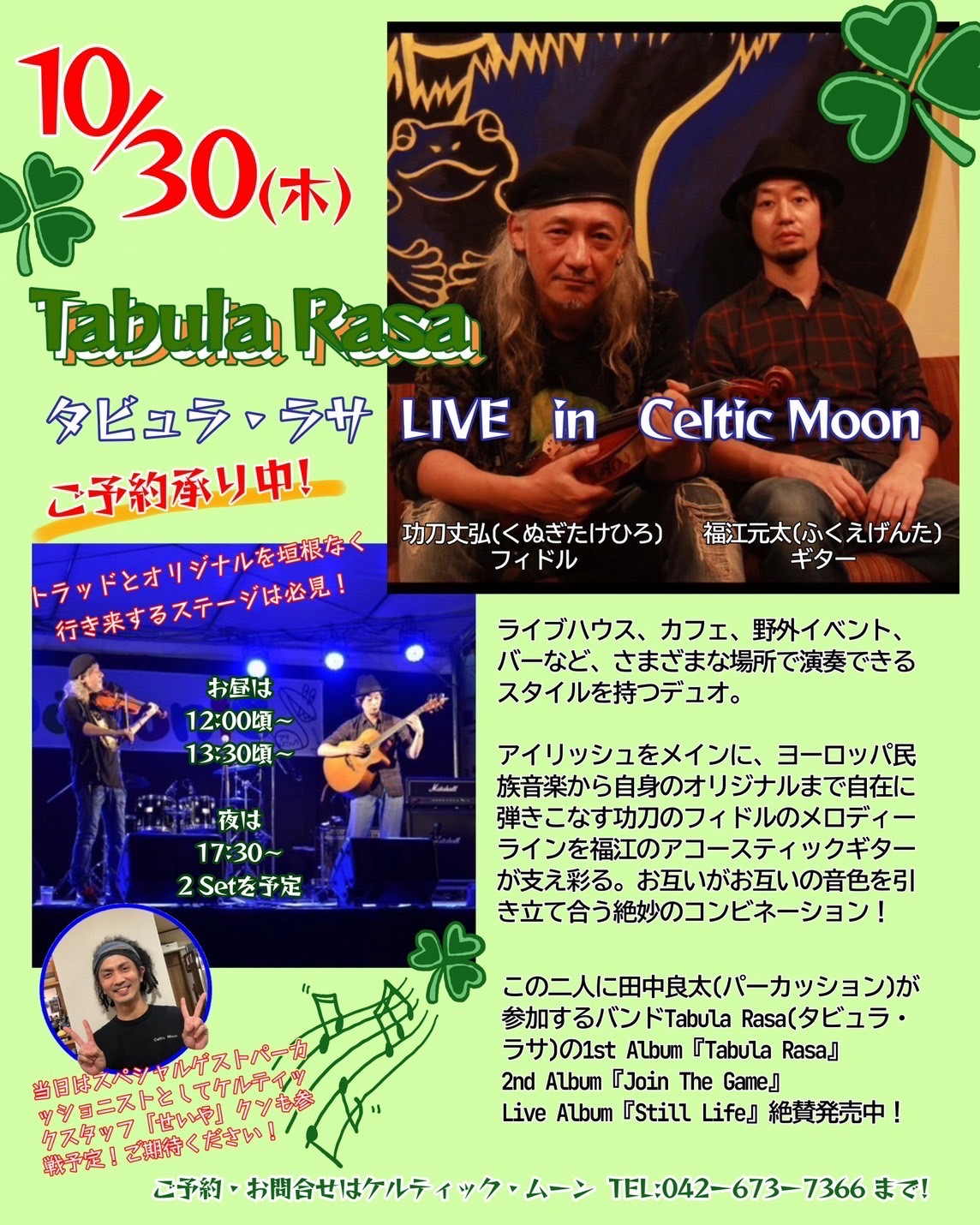 初登場🍀アイリッシュユニットライブ♬ 【10/30(木)Tabula Kasa/タビュラーラサLIVE 】